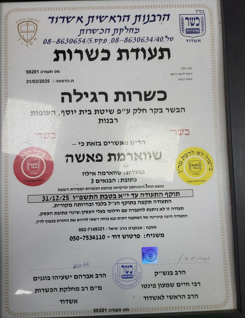 בלב אשדוד, שווארמה פאשה מגישה חוויה של טעם אותנטי, בשר איכותי, שירות מהיר ואווירה שכונתית שאי אפשר שלא לאהוב. אצלנו כל מנה יוצאת מהלב – בין אם אתם בעניין של שווארמה קלאסית ובין אם אתם בעניין לאפה עבה ומפנקת במיוחד